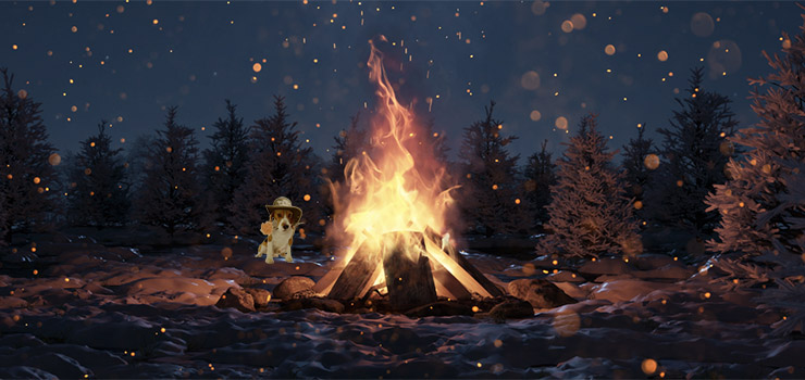 Sientes el calor del fuego mientras baila el baile del cuento y las estrellas titilan asintiendo fon risa que destella.
